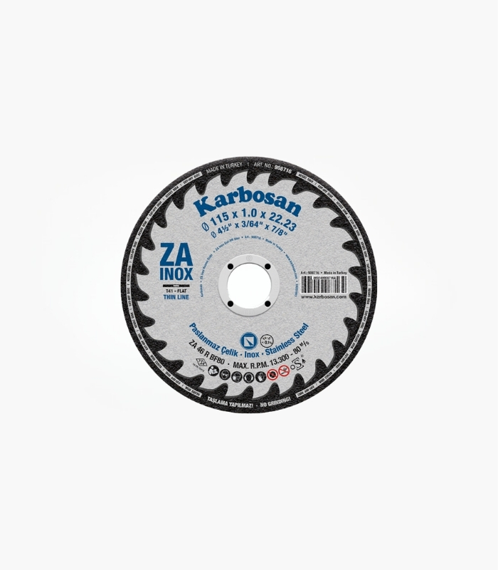 - Paslanmaz çelik (Inox), 304 ve 316 L kalite ince saclarda, 304 kalite paslanmaz çelik boru, lamaların kesim ișlemleri için uygundur. Özel zirkonyum oksit ve alüminyum oksit așındırıcı tanelere ve sert yapıya sahiptir. Ürün benzerlerine oranla daha uzun ömür, hızlı kesim avantajına ve ısıya karșı duyarlı davranıș gösteren paslanmaz malzemelerin, ısı tesirini en aza indiren bir evsafa sahiptir. Ürün demir (Fe) ve kükürt (S) ihtiva etmez.
